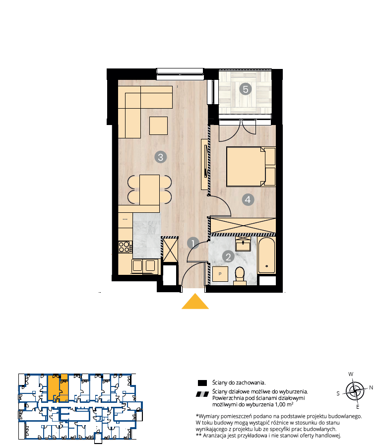 - Funkcjonalny układ wnętrz: salon z aneksem kuchennym, sypialnia, łazienka, przedpokój oraz loggia z zachodnią ekspozycją, z dostępem zarówno z salonu, jak i sypialni