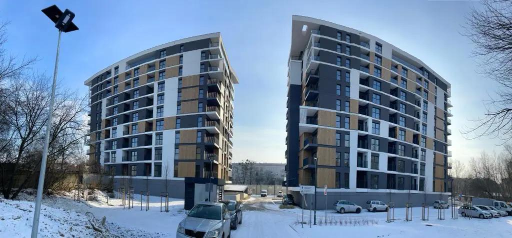 - 2 budynki 10-kondygnacyjne – 121 mieszkań i 2 lokale usługowe