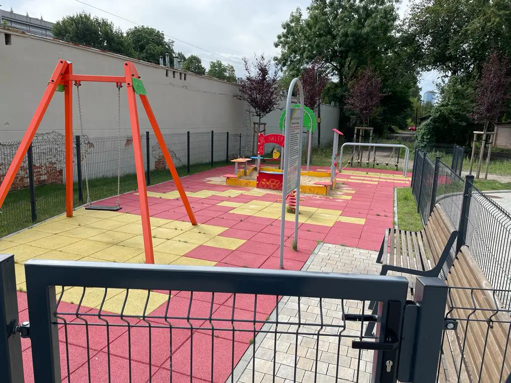 - Przed budynkiem: plac zabaw, tereny zielone i miejsca postojowe