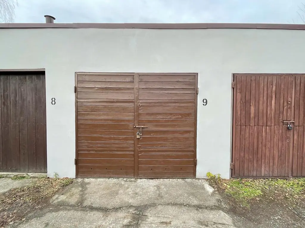 Garaż murowany, w zabudowie szeregowej.