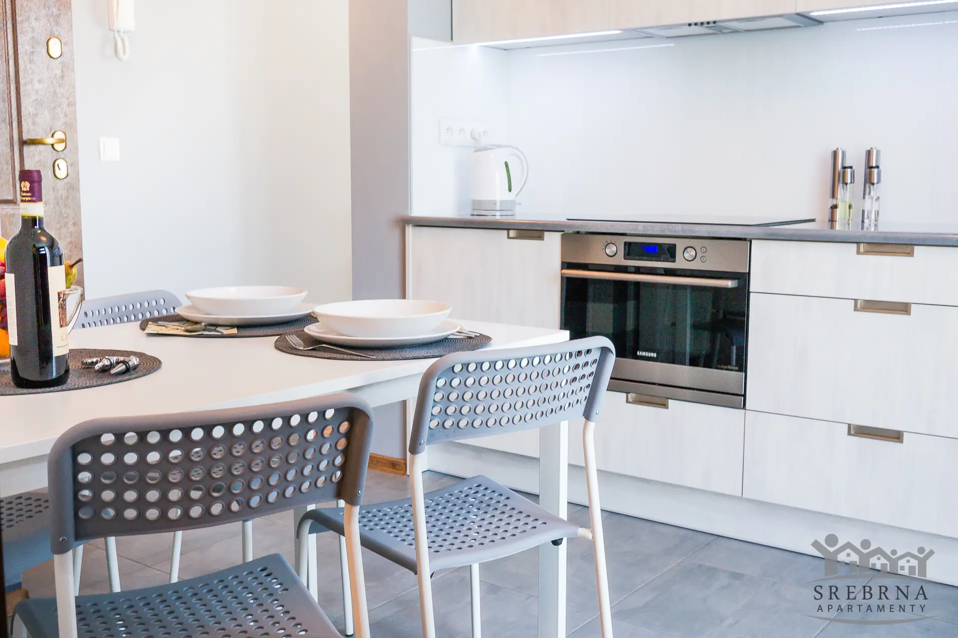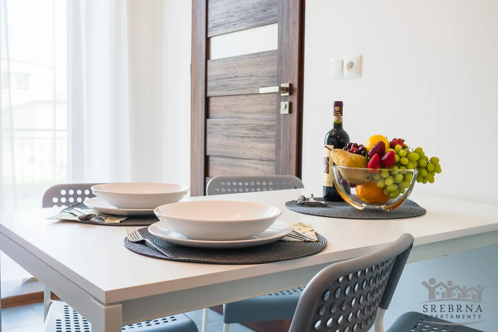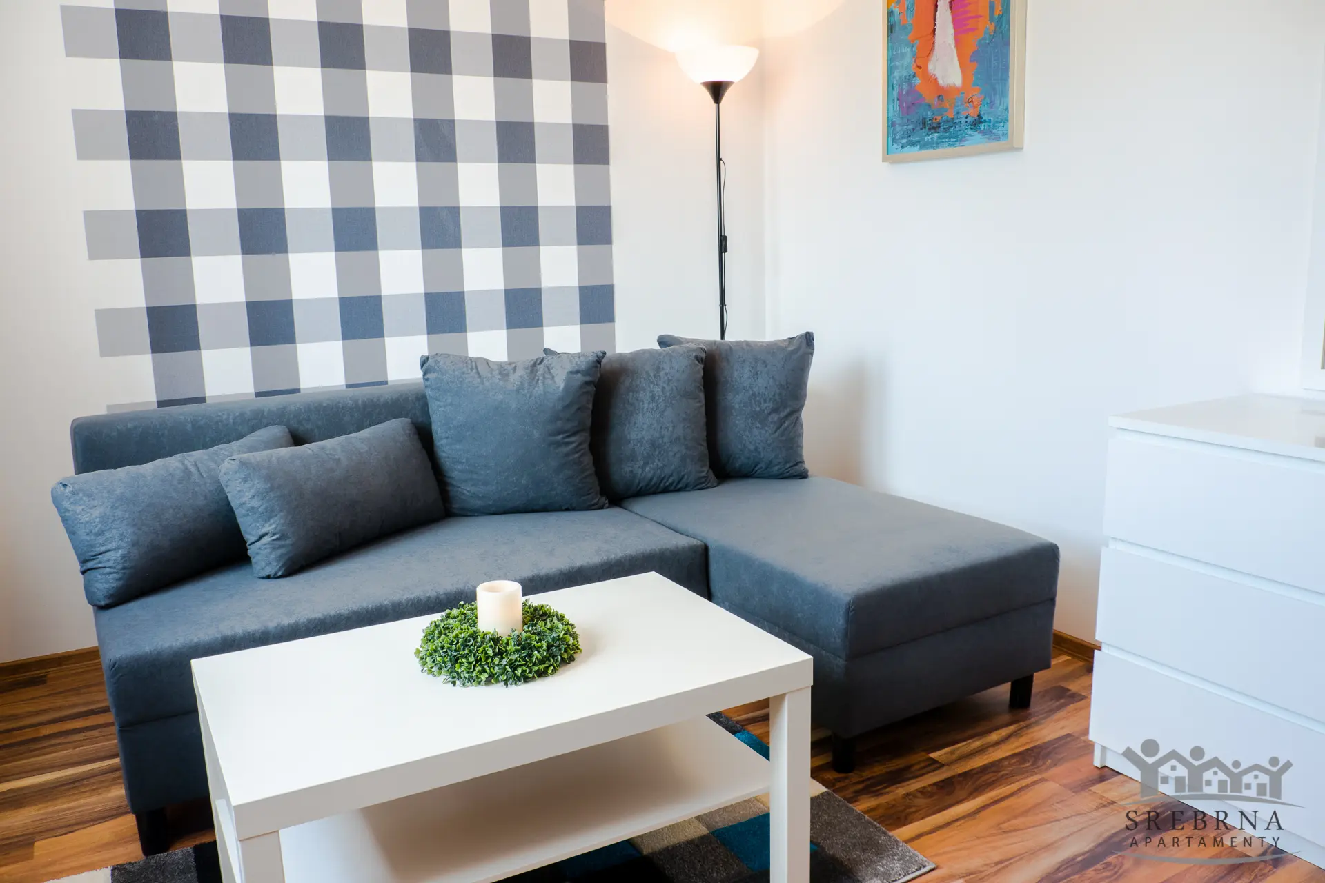 Prezentowany apartament jest jednym z Apartamentów SREBRNA (Mieszkanie nr 2). Apartamenty SREBRNA to w sumie zaledwie 6 lokali mieszkalnych o powierzchni od 35 m2 do 50 m2, co gwarantuje najemcom spokojne sąsiedztwo. Obiekt, w którym zlokalizowane są mieszkania jest monitorowany, ogrodzony oraz wyposażony w domofon, zapewniając gościom poczucie bezpieczeństwa. Do dyspozycji gości pozostaje również ogrodzony parking.