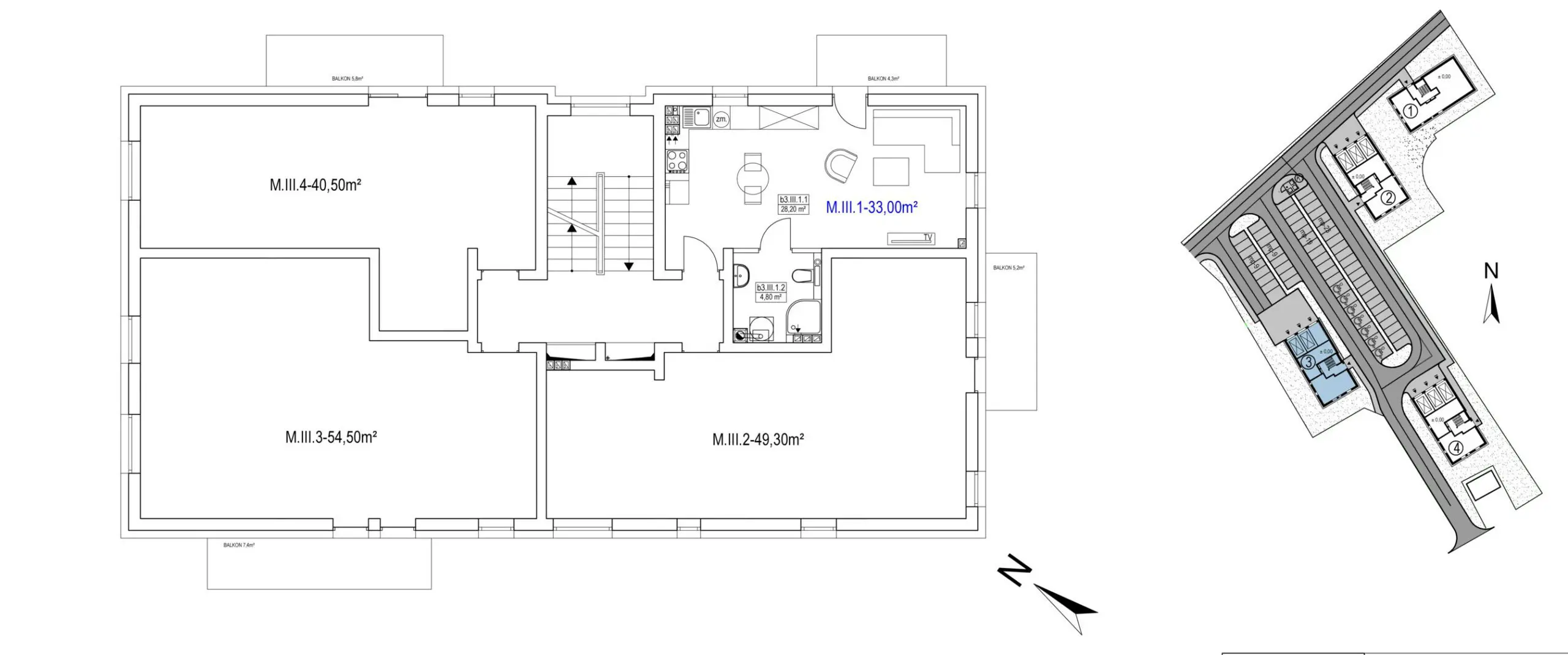 Mieszkanie zlokalizowane jest w budynku nr 3 (Mieszkanie nr 6) Osiedla LAUROWEGO w Pszczynie przy ul. K. Szymanowskiego 36 (obok Pasażu Książęcego), na terenie osiedla mieszkaniowego Kępa, w sąsiedztwie zabytkowego Parku Pszczyńskiego, przylegającego do Pszczyńskiej starówki. Zabudowa Osiedla Laurowego obejmuje 4 budynki mieszkalne wielorodzinne o 4 kondygnacjach naziemnych, w których jest łącznie 46 mieszkań (o powierzchni użytkowej od 33 m2 do 72 m2).