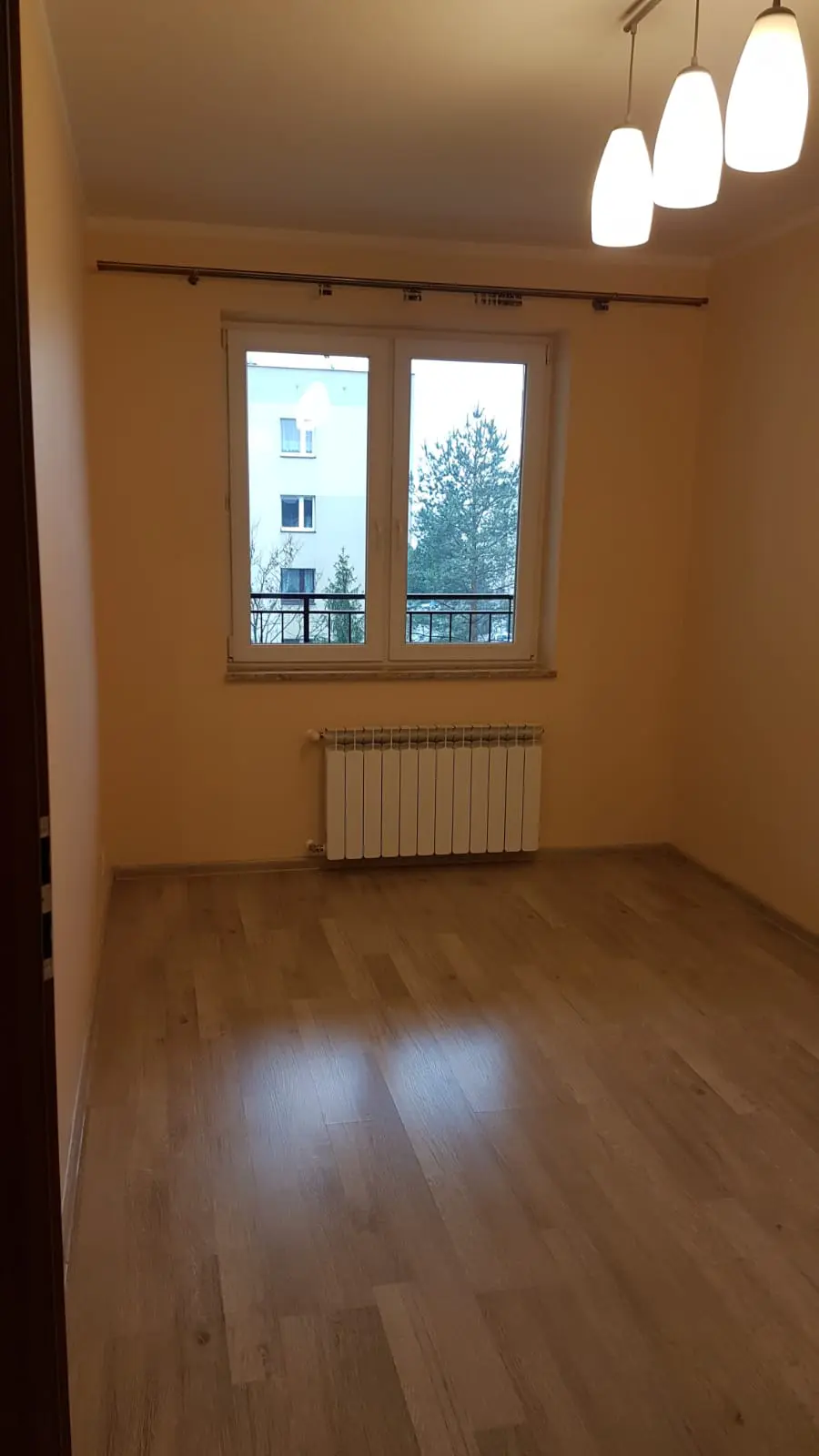 brak mebli, wyjście na balkon skierowany na zachód.
