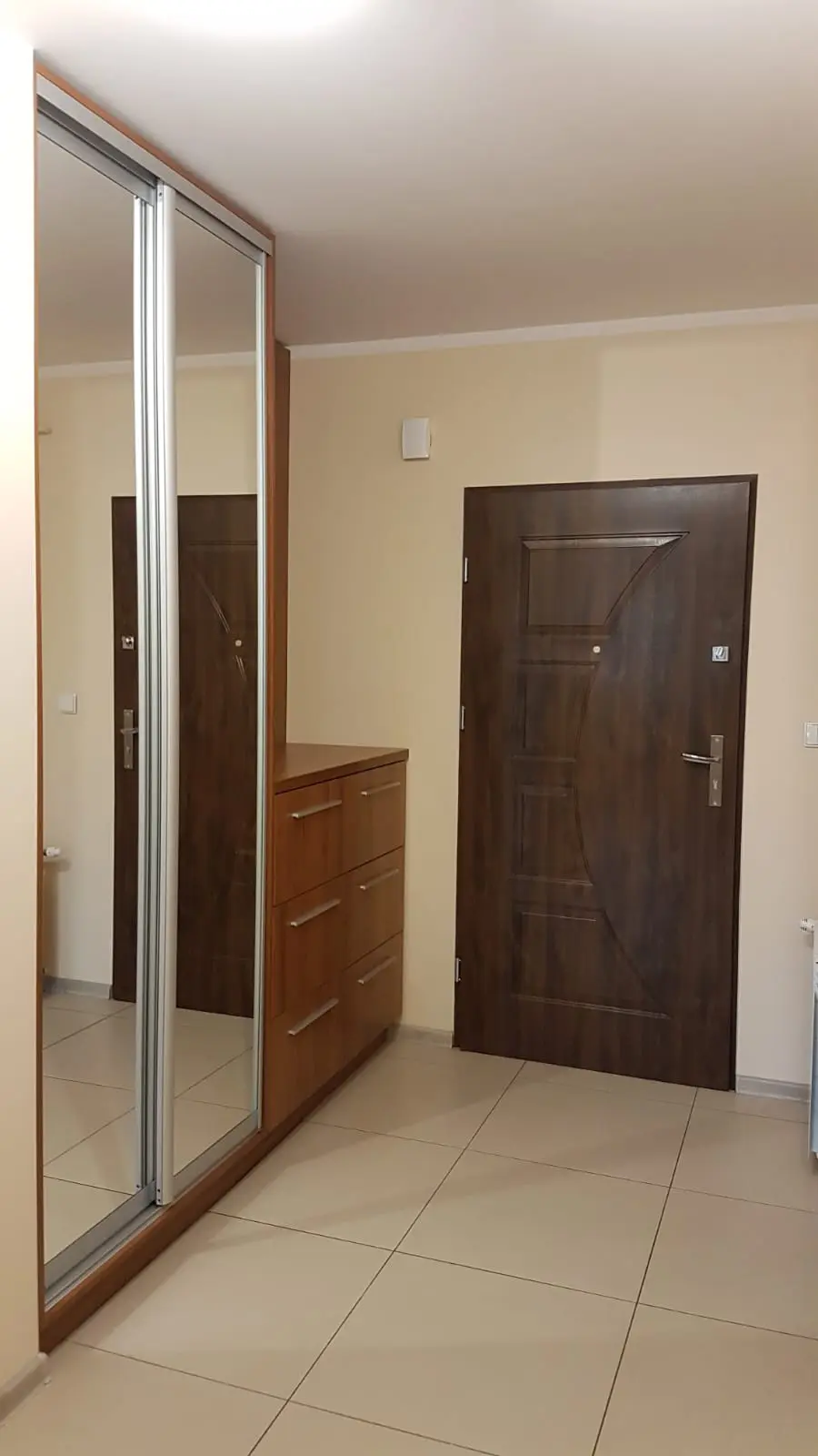zabudowana szafa ubraniowa z drzwiami przesuwnymi i lustrem.