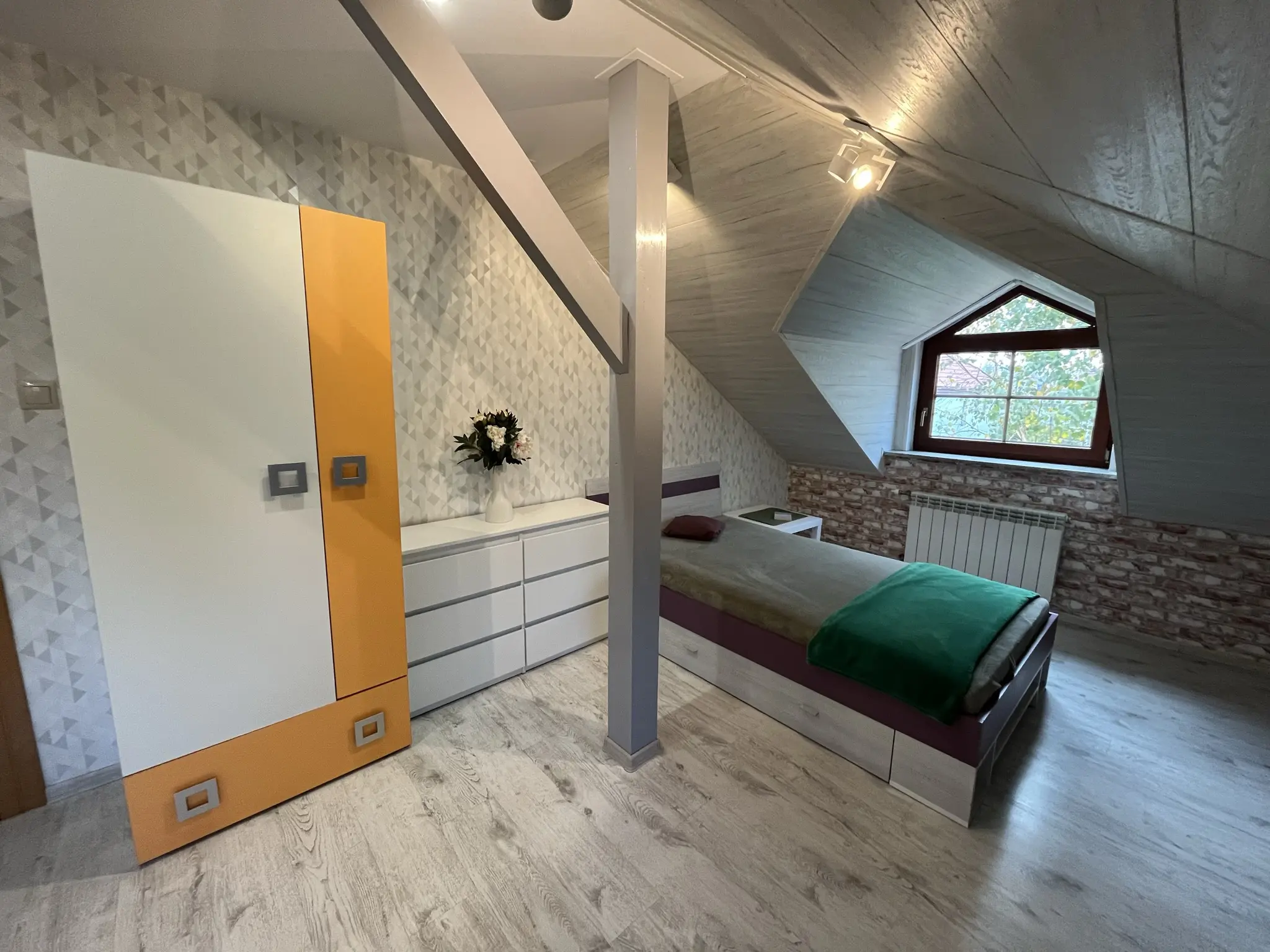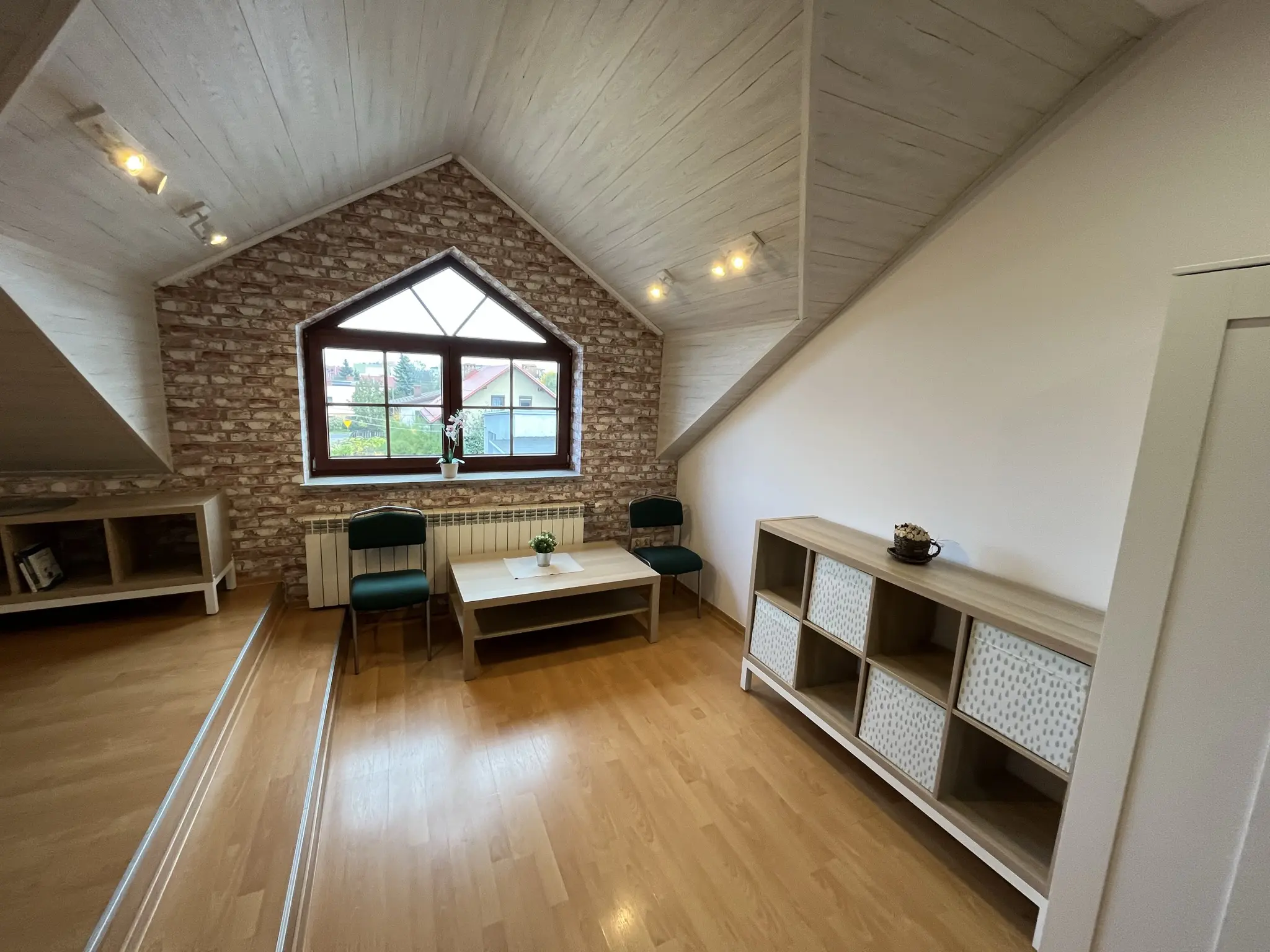 • Informacja Skrótowa Całkowicie umeblowane i wyposażone duże 3-pokojowe mieszkanie (pół 2-rodzinnego domu) na 2 piętrze (ostatnie piętro), z dostępem do pięknego ogrodu. Media, wifi i garaż w cenie.