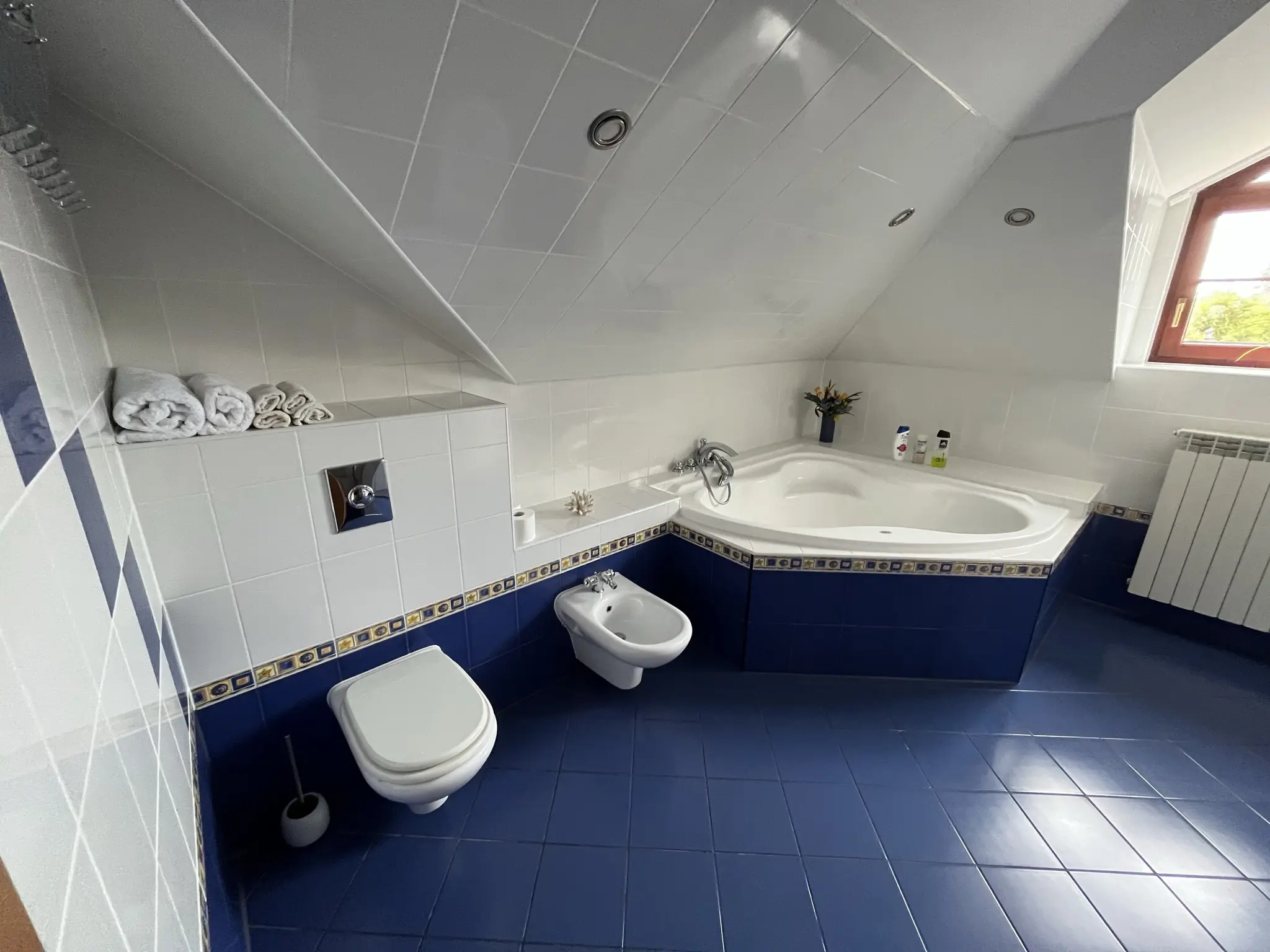 • Wyposażenie Dodatkowe Internet Wi-Fi, domofon, dzwonek drzwiowy, garaż, wjazd na ogrodzoną posesję przez bramę sterowaną pilotem, pralka (do dyspozycji na parterze), wanna.