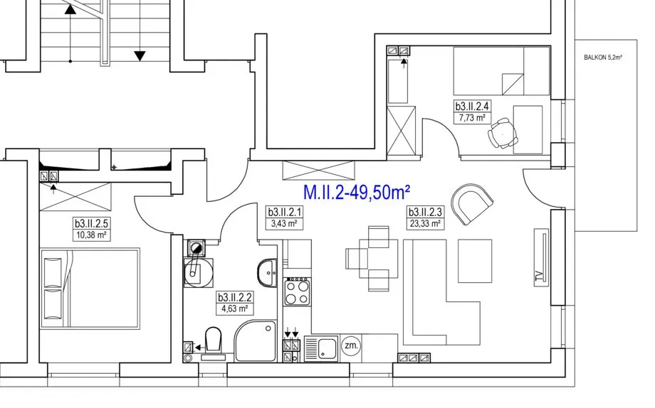 Pomieszczenia salon z aneksem kuchennym, sypialnia (2 szt.), łazienka i przedpokój oraz dodatkowo balkon.
