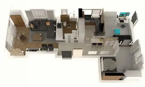 Mieszkanie składa się z salonu, osobnej kuchni oraz dwóch pokoi, które mogą być zaaranżowane na gabinet, sypialnię lub pokój dziecięcy. Bardzo duży, funkcjonalny salon z bezpośrednim wyjściem na duży taras od strony północno-zachodniej. Jeden z pokoi posiada balkon skierowany na południe. Okna i drzwi tarasowe wyposażone w rolety zewnętrzne. Osobna, funkcjonalna kuchnia. To idealna oferta dla osób szukających dużej przestrzeni i komfortu.