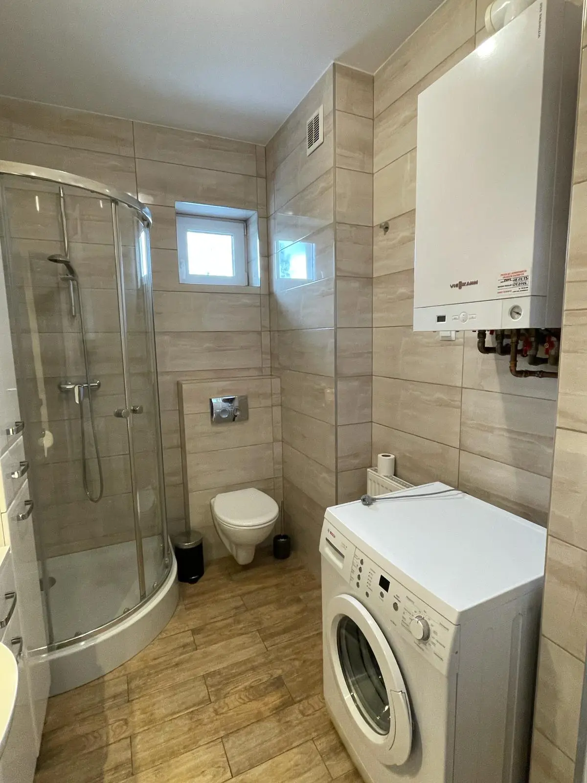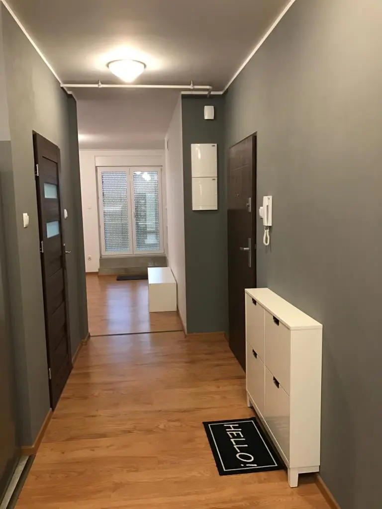 Wyposażenie Dodatkowe Internet Wi-Fi (za dodatkową opłatą), domofon, dzwonek drzwiowy, sterowane elektrycznie rolety zewnętrzne, miejsce parkingowe, komórka lokatorska, wjazd na ogrodzoną posesję przez bramę sterowaną pilotem.