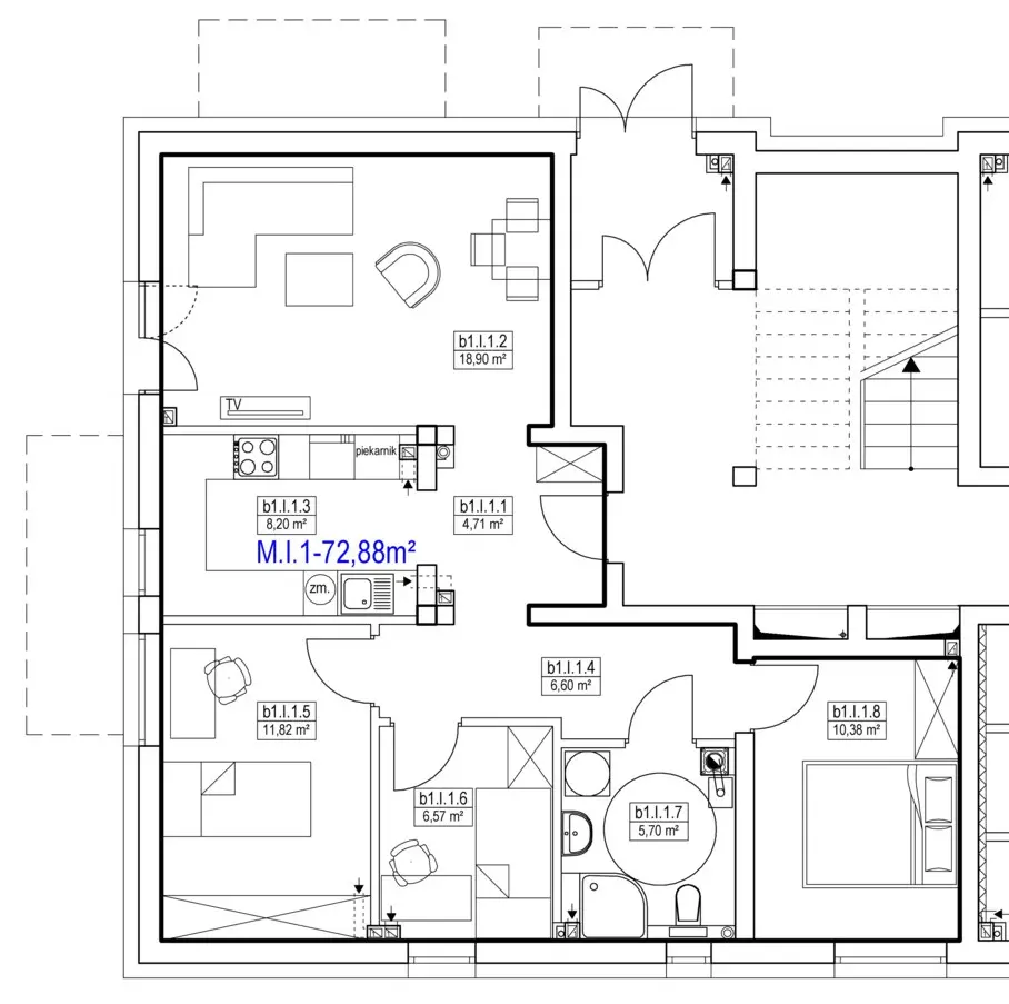 Bardzo duży, funkcjonalny salon z drzwiami tarasowymi skierowanymi na południe. Trzy pokoje, mogące być zaaranżowane na sypialnię, gabinet czy pokój dziecięcy. Duża, funkcjonalna kuchnia. Mieszkanie bardzo dobrze doświetlone, okna skierowane na południowy – zachód. Okna i drzwi tarasowe wyposażone w rolety zewnętrzne. To idealna oferta dla osób szukających dużej przestrzeni i komfortu.
