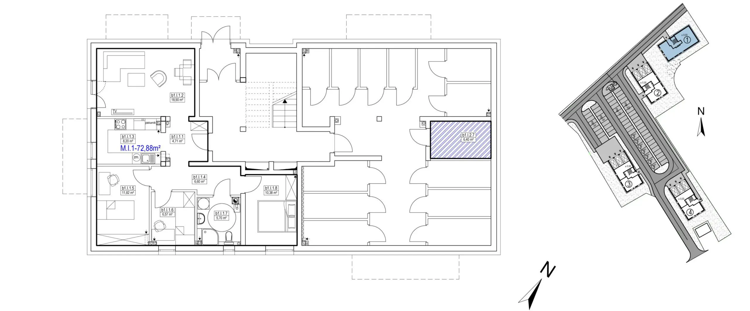 Mieszkanie zlokalizowane jest w budynku nr 1 (Mieszkanie nr 1) Osiedla LAUROWEGO w Pszczynie przy ul. K. Szymanowskiego 34a (obok Pasażu Książęcego), na terenie osiedla mieszkaniowego Kępa, w sąsiedztwie zabytkowego Parku Pszczyńskiego, przylegającego do Pszczyńskiej starówki. Zabudowa Osiedla Laurowego obejmuje 4 budynki mieszkalne wielorodzinne o 4 kondygnacjach naziemnych, w których jest łącznie 46 mieszkań (o powierzchni użytkowej od 33 m2 do 72 m2).