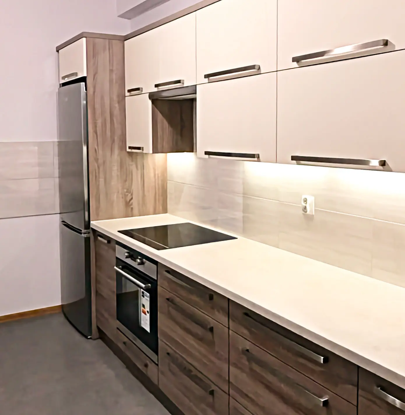 Kuchnia wyposażona jest w meble oraz niezbędny sprzęt kuchenny (płyta indukcyjna z piekarnikiem, zlew, chłodziarko-zamrażarka, pochłaniacz). Łazienka jest wykafelkowana i całkowicie urządzona (kabina prysznicowa, toaleta, umywalka, lustro). Na podłodze pokoi znajdują się panele, natomiast w łazience i kuchni płytki. Ściany są pomalowane. Mieszkanie wyposażone jest w drzwi wewnętrzne i zewnętrzne, karnisze, stolarkę okienną (PCV) wraz z elektrycznie sterowanymi zewnętrznymi roletami. W mieszkaniu zainstalowane są lampy, osprzęt elektrotechniczny i domofon, a także dwufunkcyjny kocioł centralnego ogrzewania firmy VIESSMANN oraz grzejniki. Na specjalne życzenie klientów, za dodatkową opłatą mieszkanie może zostać wyposażone w podstawowe umeblowanie.