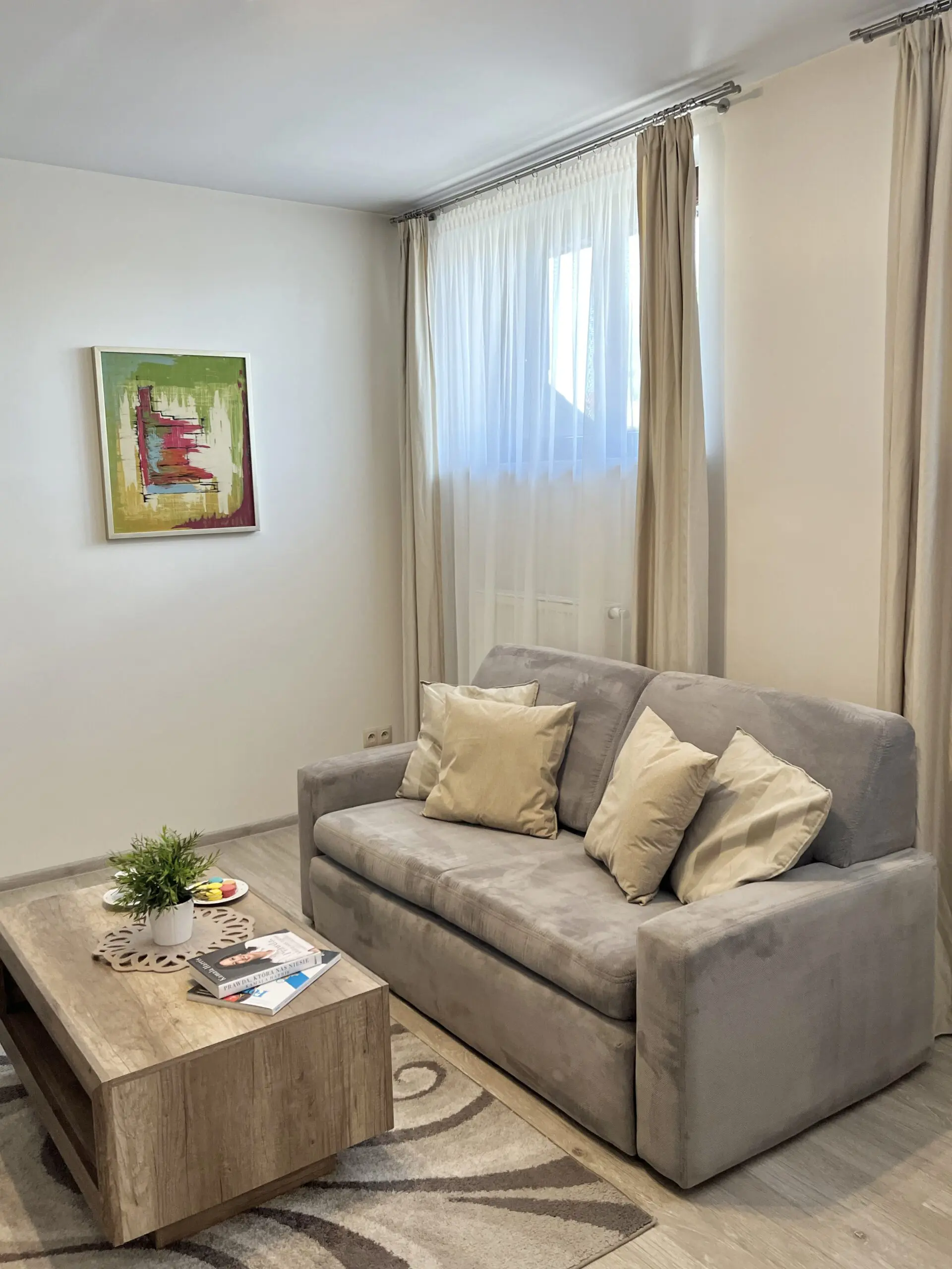 Mieszkanie całkowicie umeblowane i wyposażone. W cenie media, klimatyzacja, wifi i parking.