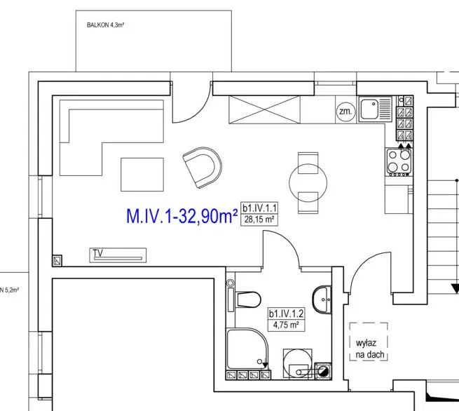 Pokój z aneksem kuchennym – 28.15 m2