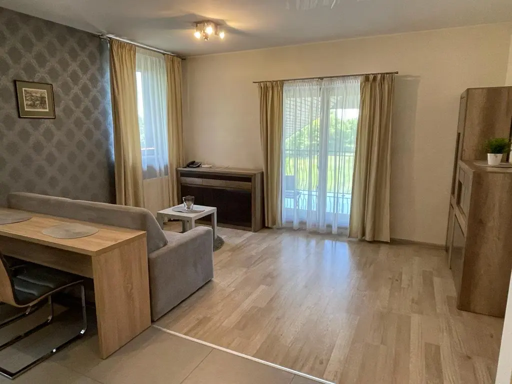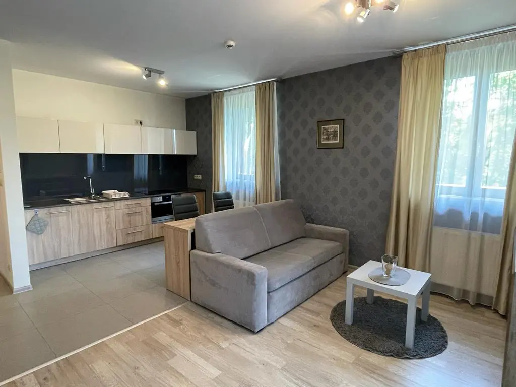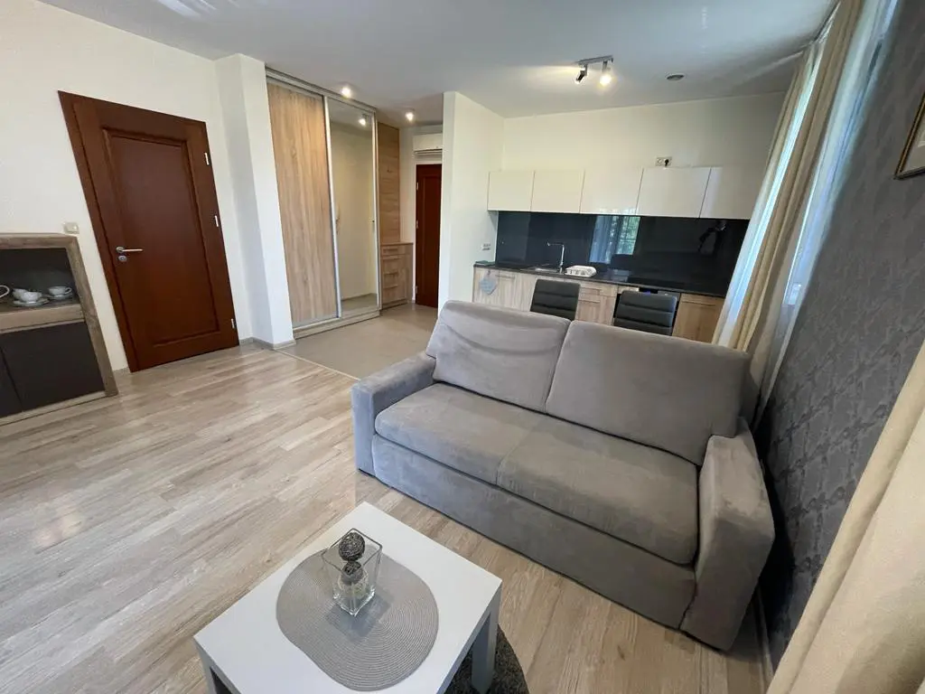 Informacja Skrótowa Całkowicie umeblowana i wyposażona, klimatyzowana kawalerka z balkonem, na 1 piętrze (ostatnie piętro). Media, klimatyzacja, wifi i parking w cenie.