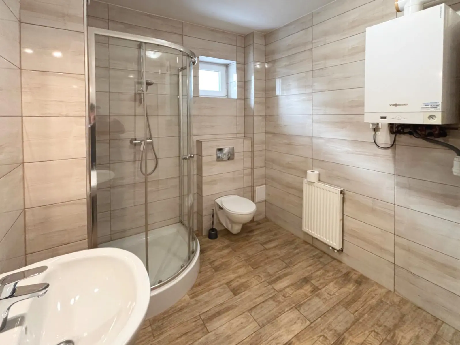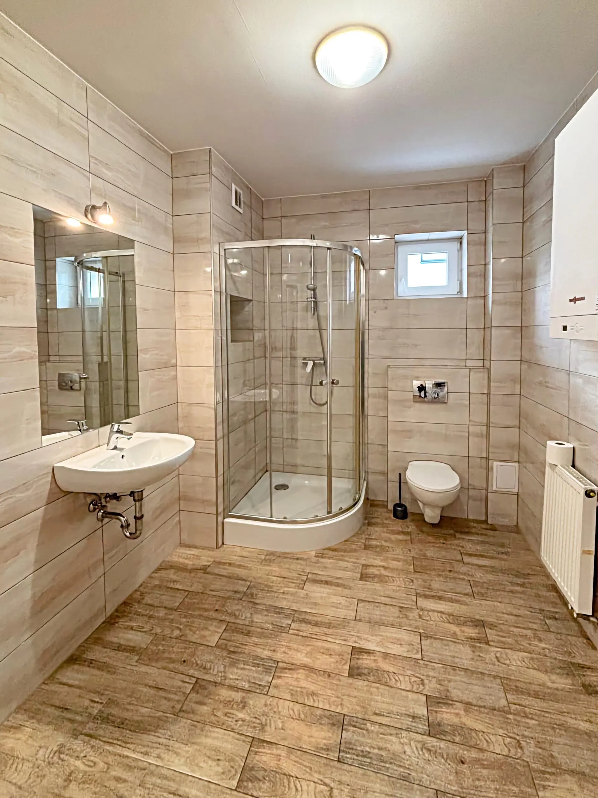 - Łazienka (6,25 m²) z kabiną prysznicową