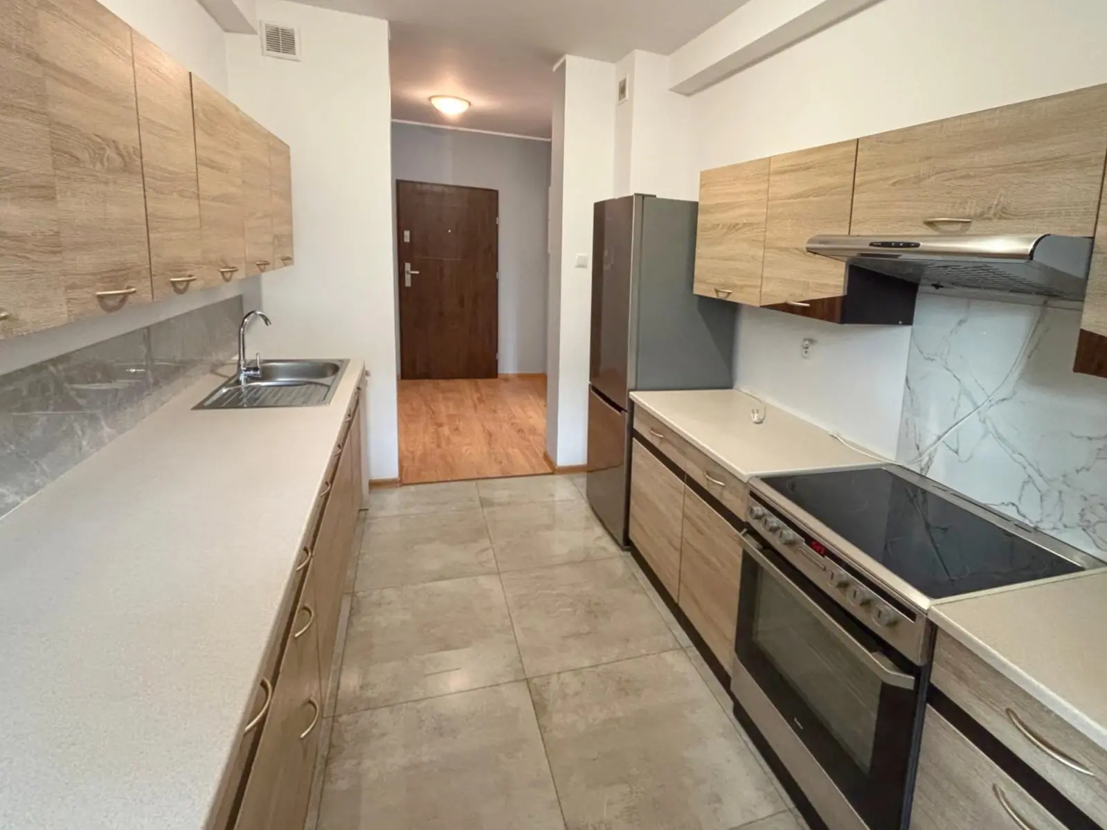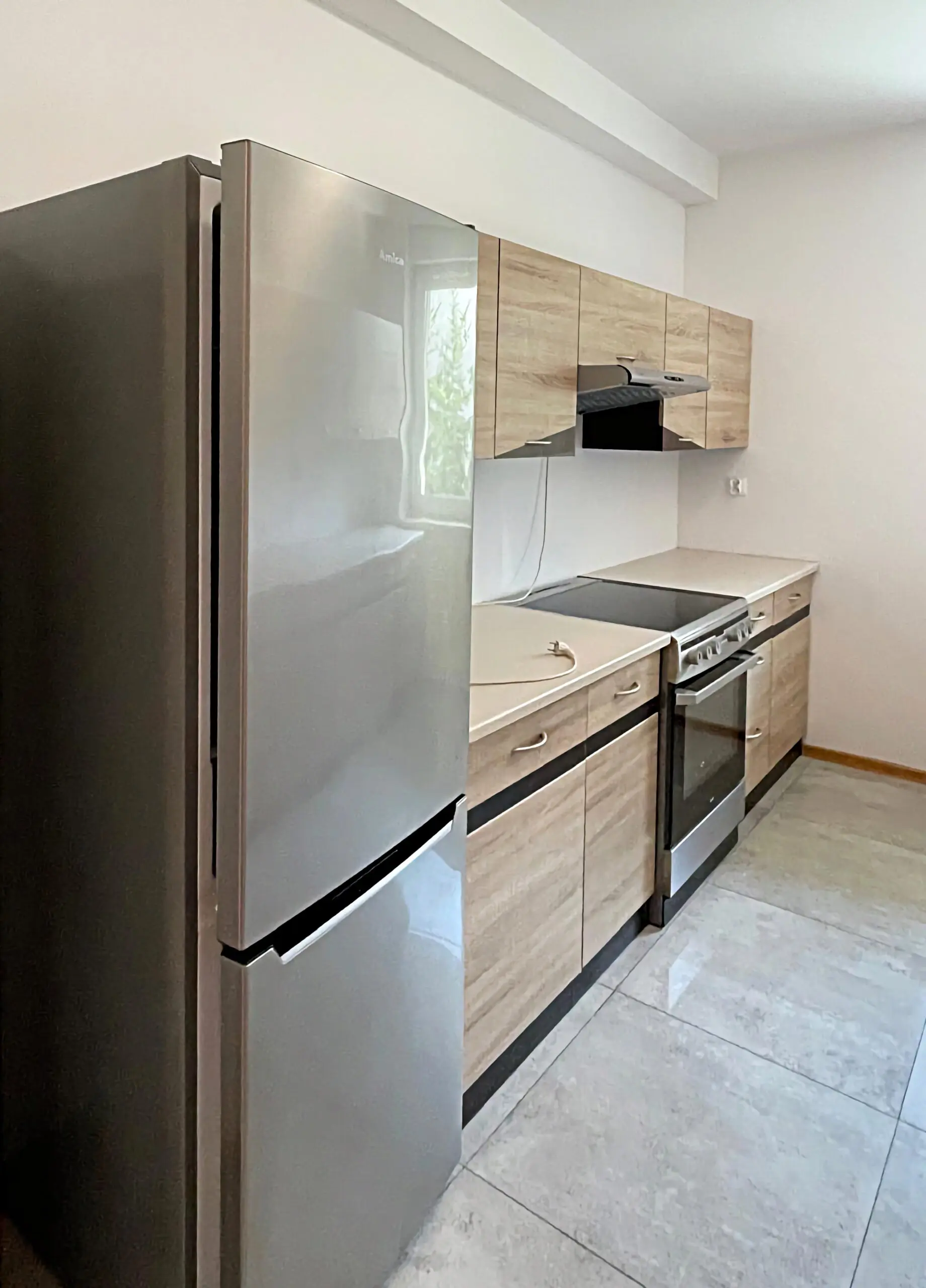 - Kuchnia umeblowana i wyposażona w: płytę indukcyjną z piekarnikiem, dużą chłodziarko-zamrażarkę, zlew, pochłaniacz